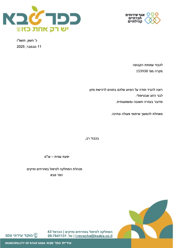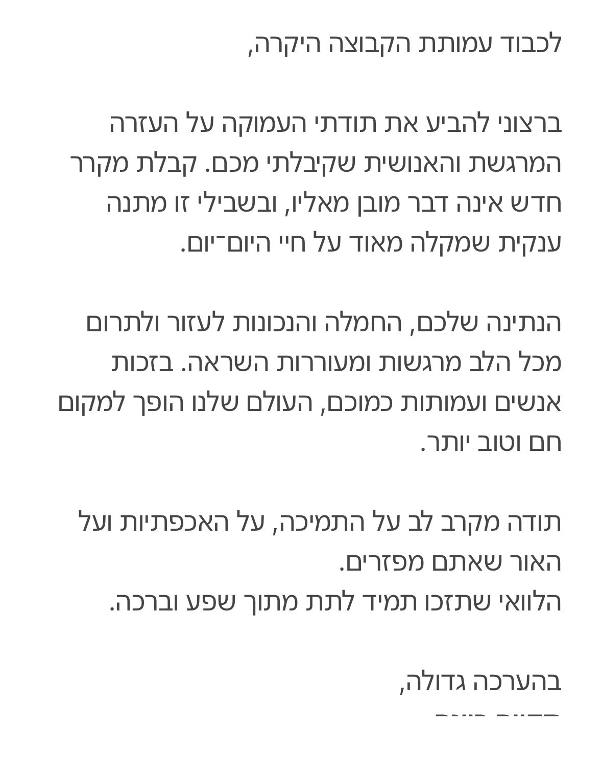 אם חד הורית קשת יום, חמישה ילדים, מתפרנסת ממשרה חלקית בלבד עקב קושי לצאת לעבוד במשרה מלאה, שני ילדים עם צרכים מיוחדים, מצבה הכלכלי קשה, חסרת כוחות ויכולות מנטליות, לסייע