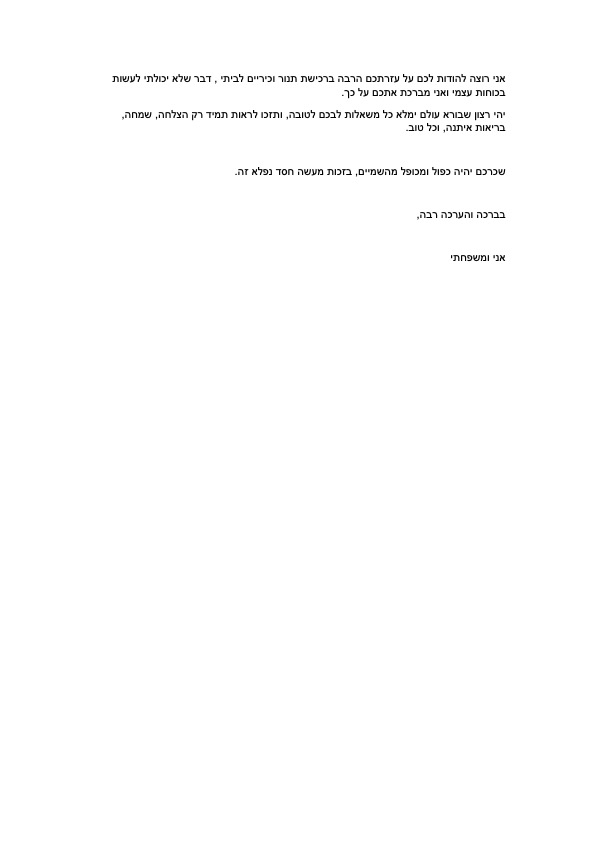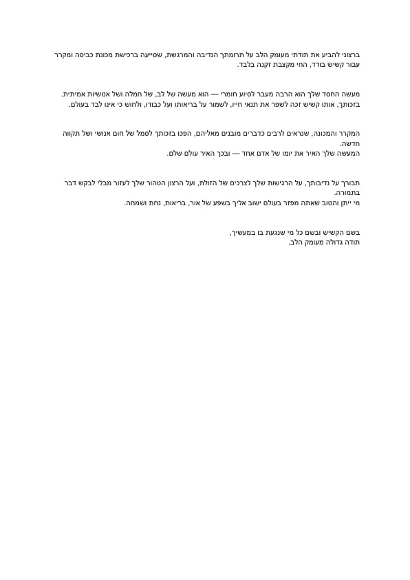 אסיר משוחרר, תחת תוכניות שיקום. מדובר במקרה סוציאלי מורכב וקשה. ב׳ בן 70, מתקיים מקצבת זקנה ועובד בעבודה פיזית קשה בשכר מינימום, בנוסף סועד את אשתו חולת הסרטן. נשמח לעזרתכם במימון