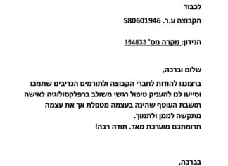 נ' גרושה ואם ל-2 ילדים: בן אשר מאובחן עם אוטיזם ובת בכיתה ז' אשר מאובחנת עם הפרעת קשב וריכוז וזקוקה לאבחון פסיכו-דידקטי לצורך הבנת מכלול קשייה ולקבלת התאמות בבית הספר.