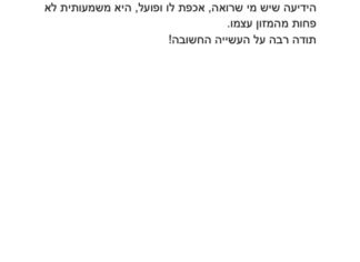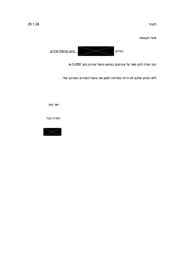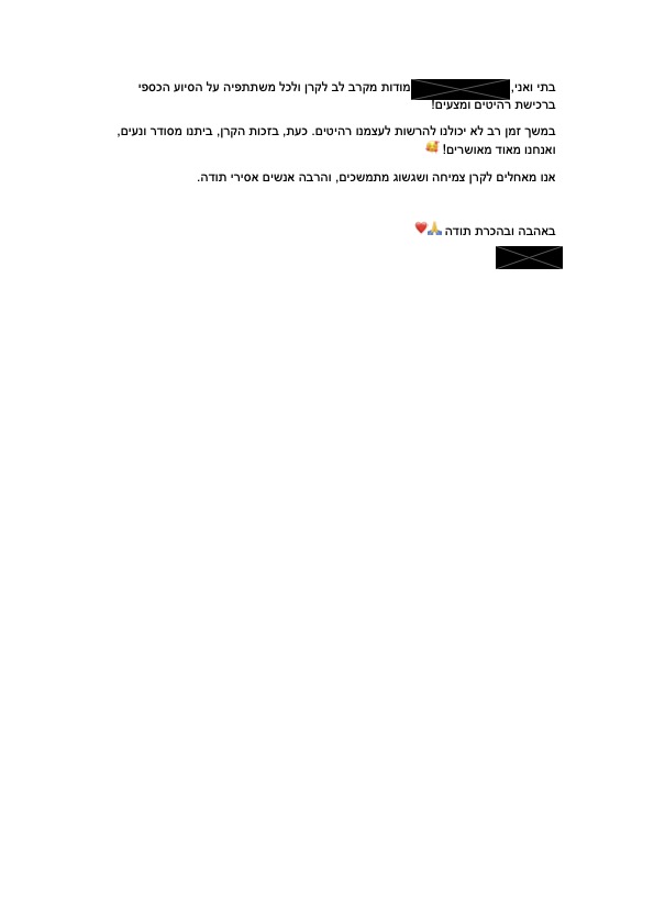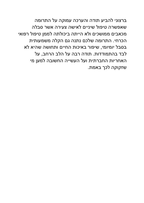 אישה בת 61, בתהליך גירושין, הייתה במערכת זוגית אלימה. נכון להיום מתקיימת מקצבת נכות בגובה של 2400 ש"ח לחודש. אם לשלושה בנים, בן אחד נפטר, בן 19 מתמודד עם השלכות