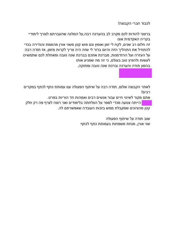 מכתב תודה
