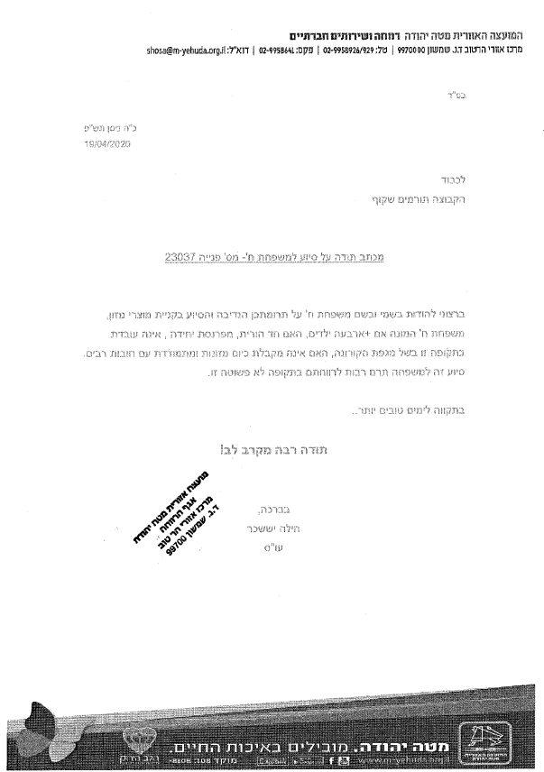 המטרה: סיוע בסל מזון