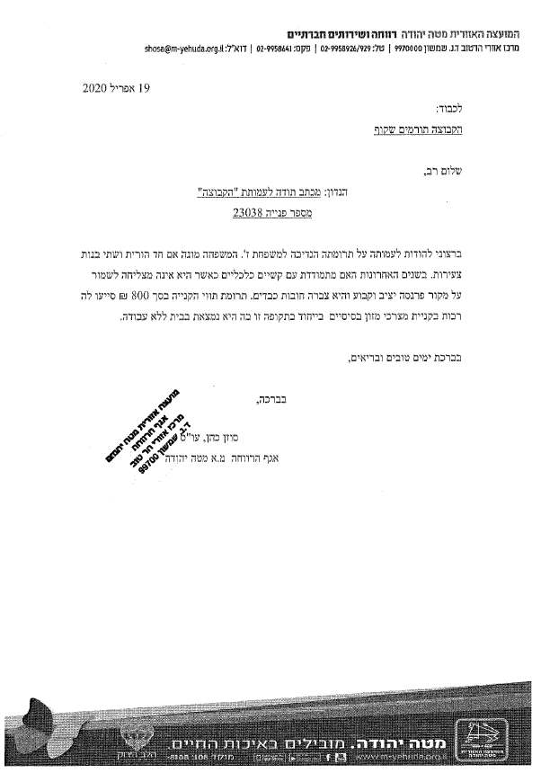 העלאת מכתב תודה וחשבונית