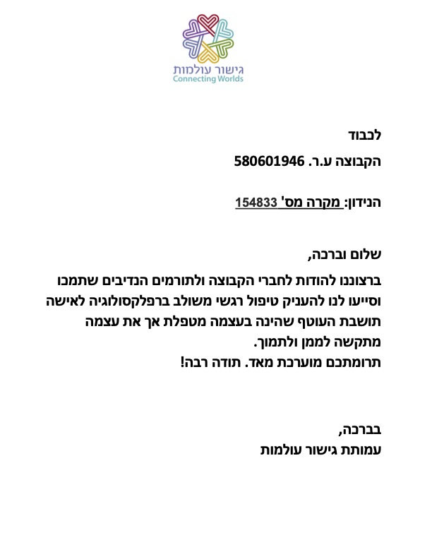 הקרן החברתית מאפשרת לכם לתרום לעמותה – ואנחנו נדאג לחלק את התרומה בין המקרים הדחופים ביותר, בהתאם ליעדים שהצבנו לשנה הקרובה. כך אתם יודעים שכל שקל הולך בדיוק למקום שבו הוא נדרש, גם בלי לבחור מקרה אישי.